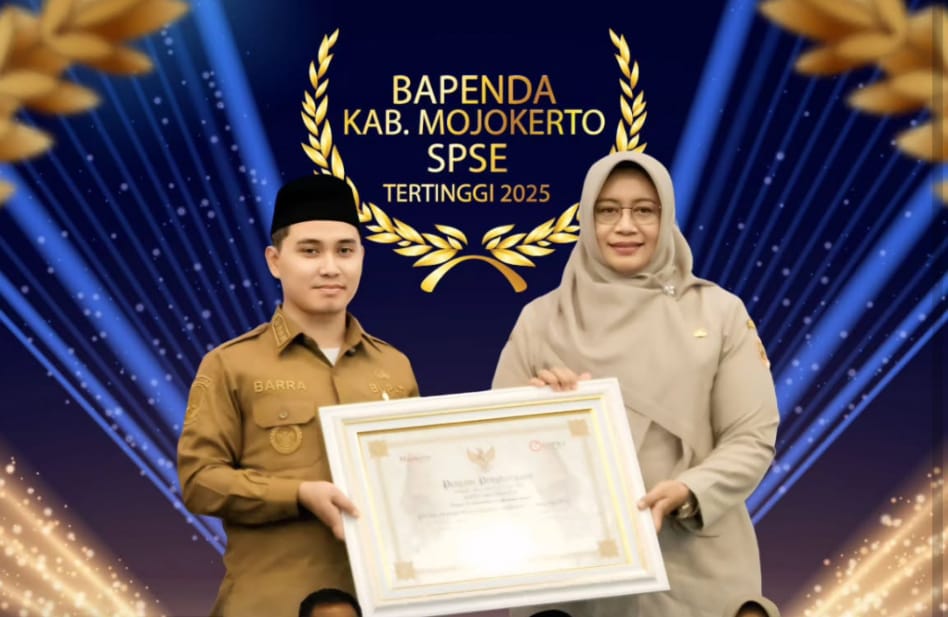 Penghargaan oleh Gus Bupati Barra ini disampaikan pada ajang PBJ Award Tahun 2025 kepada Bapenda Kabupaten Mojokerto yang telah berhasil meraih penghargaan tersebut.