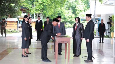 JKN, SIDOARJO – Bupati Sidoarjo Subandi melantik dan mengambil sumpah jabatan 260 pejabat struktural dan fungsional di lingkungan Pemerintah Kabupaten Sidoarjo, Sabtu (10/1/2026).
